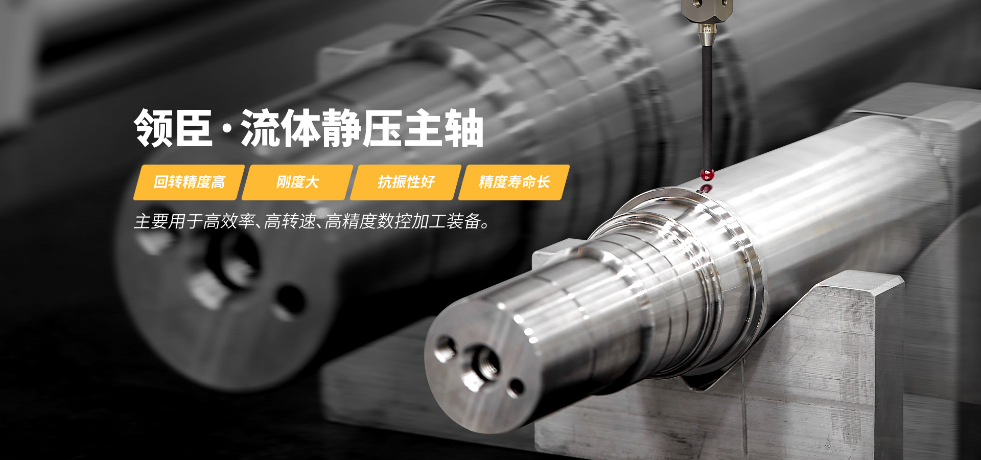 領(lǐng)臣特色產(chǎn)品為流體靜壓主軸,具有回轉(zhuǎn)精度高、剛度大、抗振性好、精度壽命長(zhǎng)的特點(diǎn),主要用于高效率、高轉(zhuǎn)速、高精度數(shù)控加工裝備。